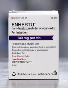 Nilsson var inte hårt förbehandlad, som är en förutsättning för behandlingen, hon var mycket sjuk men redo. Beslutet att ge Enhertu tas ändå inte lättvindligt, en av biverkningarna är lungpåverkan som kan leda till döden. Första behandlingen på klinik med Enhertu var i slutet av november. Med det hoppade hon över andra och tredje linjens behandling.