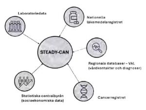 Sist, men inte minst, har vi byggt upp en stor databas, Stockholm Early Detection of Cancer Study, STEADY-CAN, som jag leder. Den innehåller cancerdata, socioekonomiska data samt hälso- och sjukvårdsdata från både primärvård och sjukhusvård (besök, diagnoskodning, förskrivningar och laboratoriedata från de tre aktiva laboratoriebolagen i Stockholm) över mer än ett decennium.